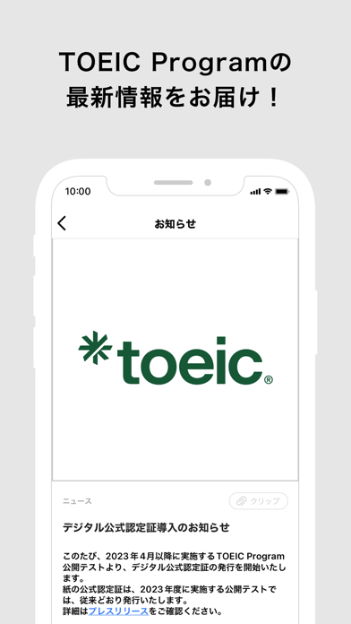 - 実際のTOEIC試験への申し込みも、アプリ内から行える