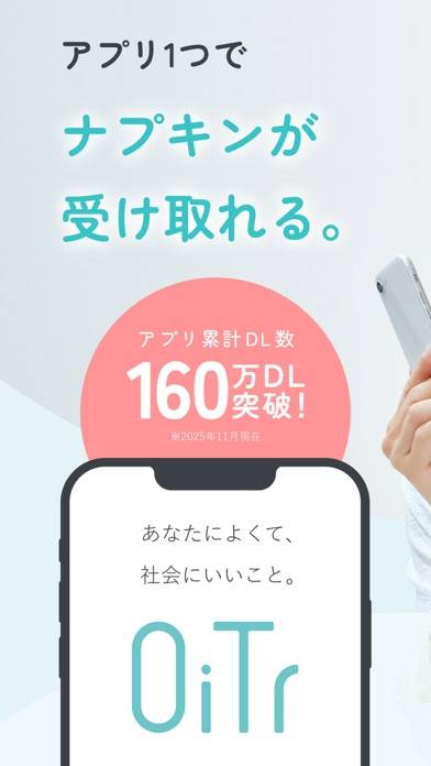 受け取る手順はとても簡単です。まずBluetoothをオンにした状態でアプリを起動して「OiTrボタン」をタップ。スマホを対応施設に設置されたディスペンサーに近づけ、ナプキンボタンを押します。しばらくするとディスペンサーから生理用ナプキンが1枚出てくるという流れです。