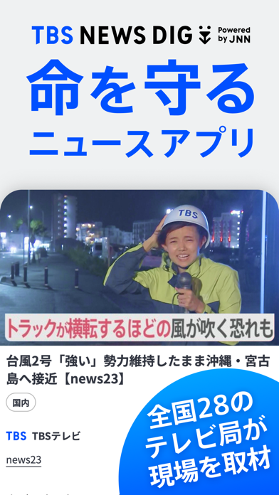幅広い情報を手に入れたい方に最適な、TBS提供のニュースアプリ。リアルタイムでのプッシュ通知機能により、地震や津波などの災害発生時には即座に知らせてくれます。また、24時間体制のLIVEニュース配信で世界中の出来事を確実にキャッチ。