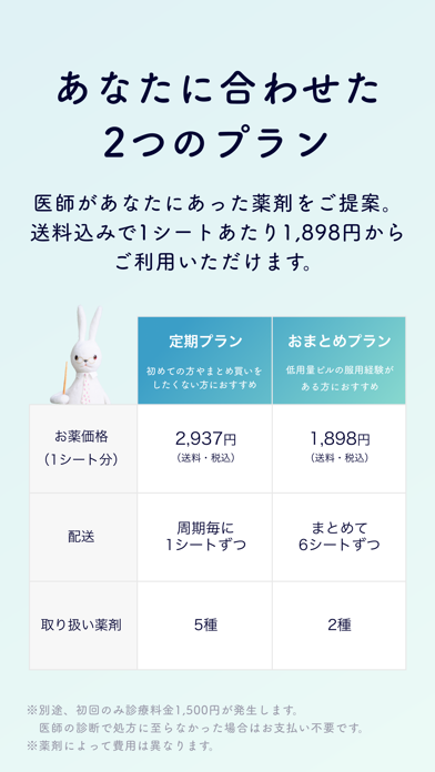 - 薬は5種で、どの薬を処方されても値段が一律で購入できる