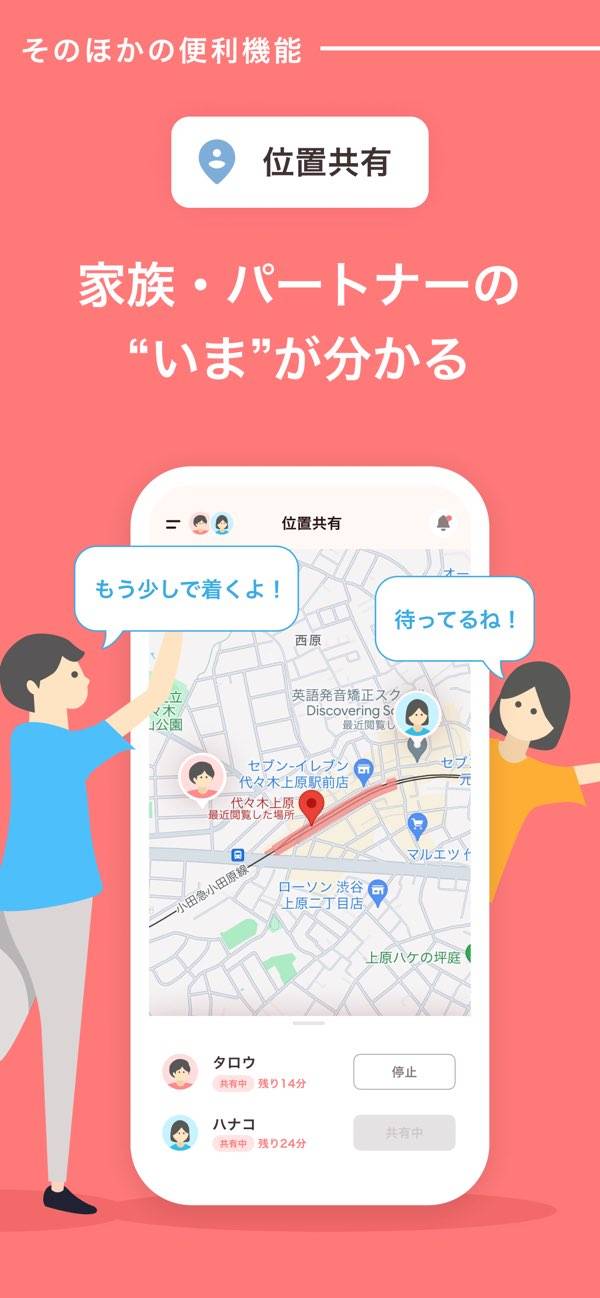 - お互いの位置情報も共有可能。共有するタイミングも自由に設定