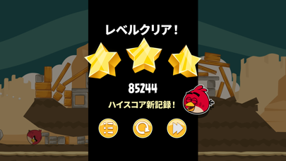 ▲画面を長押ししてアングリーバードを引っ張り、ピッグをすべて倒すとステージクリア。