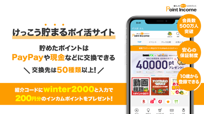 クリック、ゲーム、アンケート、動画視聴、案件登録、歩数等などで多彩な稼ぎ方があるので貯めやすいです。イベントが豊富でポイ活ユーザーを飽きさせない工夫もされていると思います。歩数は1万歩以上歩けば動画視聴が10回出来て5円以上は稼げます。クリックはサイト閲覧していくだけでポイントが貯まっていくので嬉しいです。ゲームはポイントインカムのキャラ達が出迎えてくれて賑やかです。アンケートは少数ポイントから高ポイントがあって自分に合ったアンケートをすれば貯まっていきます。案件登録は条件を満たしたり、ショッピングしたりして貯まるのでポイントインカムを経由しているだけで大変お得です。交換先が豊富で自分に合った交換先が必ず見つかります。