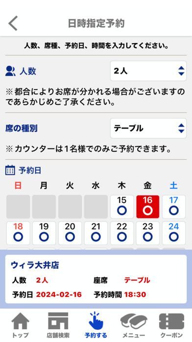 - クーポンや予約は会員登録が必要
