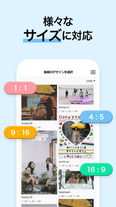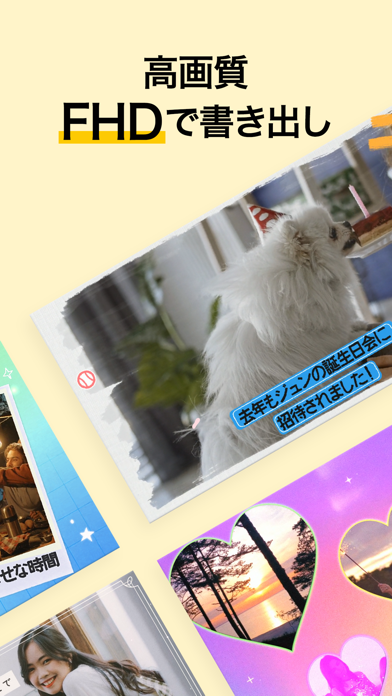 お祝い用のショート動画を作れるアプリを探していました。文字の挿入が簡単なのが良かったです。写真や動画の決められた場所に文字を入れていくだけで、慣れていなくてもすぐに編集できました。テンプレートも豊富で、季節ごとのイベントに合わせて動画を作るのも楽しそうですね。