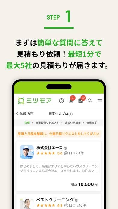 ▲依頼が完了すると、最大5人のプロから見積もりが届く。価格を比べながら納得して任せられる。