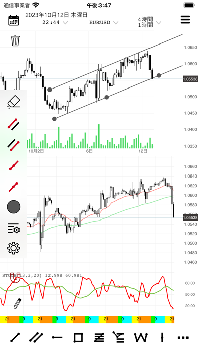 為替の過去データを使ってチャートを再生し、今の実力を試せるアプリです。2015年以降の豊富な通貨ペアと時間足に対応し、自由に日付を選んで検証が可能。秒単位の取引ではなく1分足から先の動きを読む力を鍛えるのにぴったりです。リアルな相場環境を再現した上で、自分のトレードルールを磨いていけますよ。
