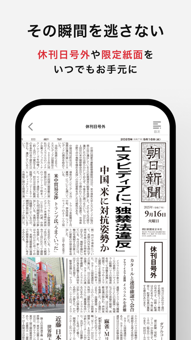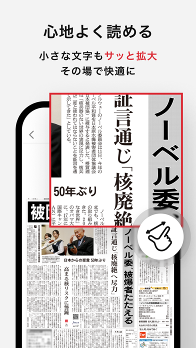東京・大阪・名古屋・北海道・九州などの朝刊や夕刊を、紙の新聞と同じように読めます。都道府県庁所在地ごとの紙面が見られるので、出張先でもその土地の話題をすぐにキャッチ。スマホ画面でも見やすいようにピンチ操作や拡大表示に対応しており、小さな文字もしっかり読めます。