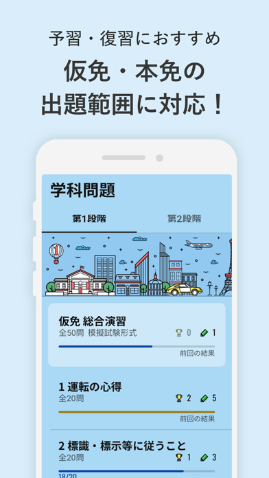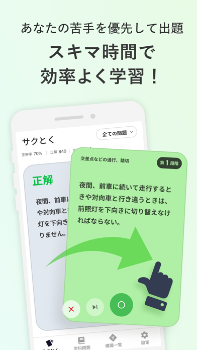 • スキマ時間を活用して、運転免許の学科試験対策ができるアプリ