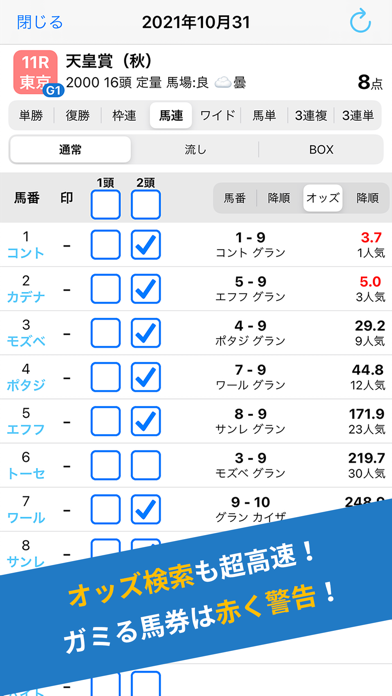 オッズはもちろん展開予想やコース情報など、レース前情報が充実。着順の予想がしやすくなるでしょう。買い目を決めるときには、トリガミの可能性が高い組み合わせがあると注意してくれます。