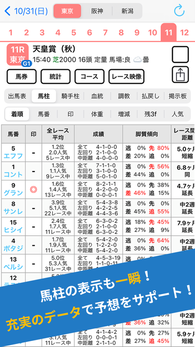 - 詳細なレース前情報をチェックして、着順予想を助けてくれる競馬アプリ