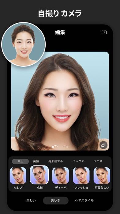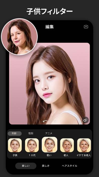 - 老け顔も若返りもサクッと試せる。見比べが楽しい