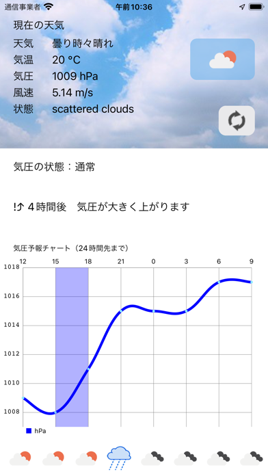 - 気圧の変化をグラフで表示。シンプルだからわかりやすい