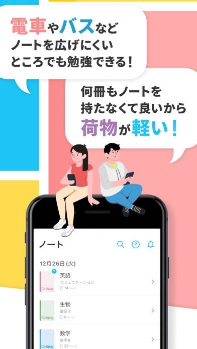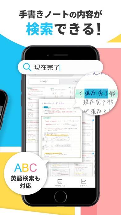 授業で使ったノートをスマホで撮影して、スキマ時間に勉強できます。暗記シートやマーカーなどのツールを使えば、効率的なテスト勉強が可能。内容ごとにノートを分けて管理でき、複数のテスト対策もスマホひとつでカンタンです。