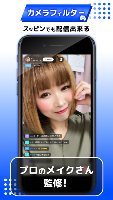 プロ監修のフィルターカメラを搭載 理想のメイクで気軽にライブ配信