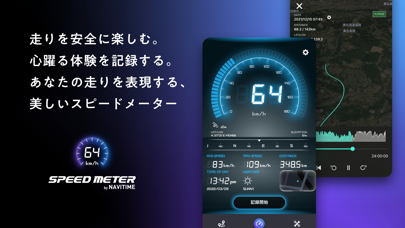 走っている道路に合わせて、実際の制限速度と自分の速度を見比べられます。速度はkm/h表示に加えて、mphやktにも切り替え可能。画面も見やすく、スピード計だけでなく高度や方角もひと目で確認できるので、運転中の情報把握に役立ちます。