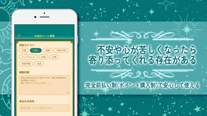 経験豊富な占い師による復縁・恋愛サポートが受けられるアプリです。相談者の悩みに寄り添うことをモットーにしており、場所や時間を気にせずチャット相談が可能。完全前払いのポイント購入制で、安心して相談できる仕組みが整っています。