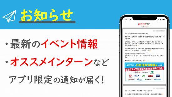 - このアプリにしかない企業の求人情報がある。就活イベントを探せる