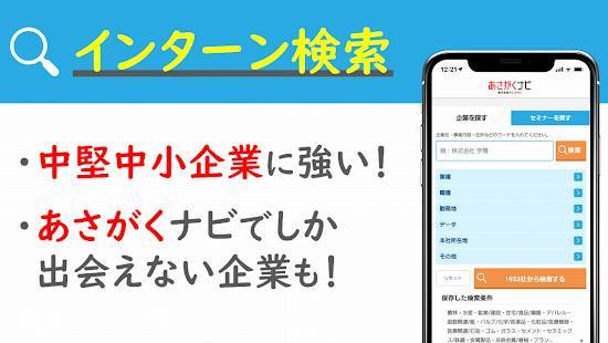 ▲企業の求人検索では、「あさがくナビ」にしかない求人情報もある。特に中堅の中小企業に強い。