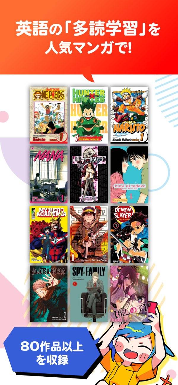 マンガが英語で読めるからあんま勉強してる感がなくて自分にはちょうどいい ジャンプ作品、鬼滅とかワンピとかスパイファミリーとか、超有名でおもしろいことが確約されているマンガで学べるところもいい