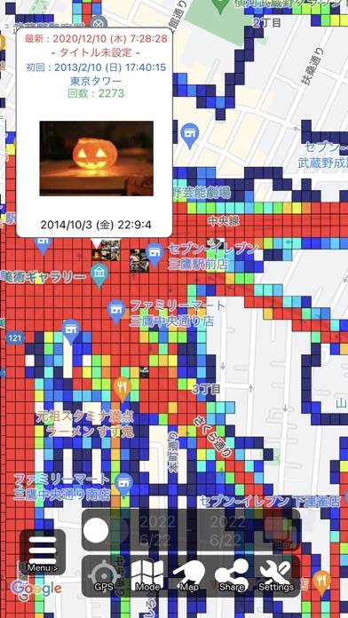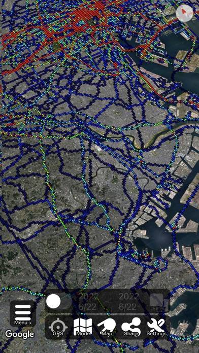- 1枚の地図に全てのGPSログを記録するアプリ。通った場所が一目瞭然