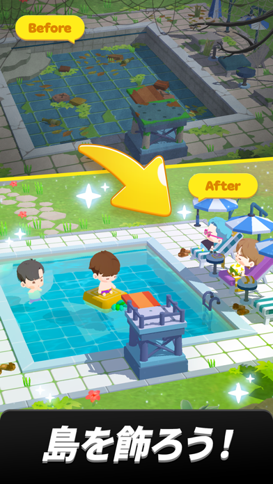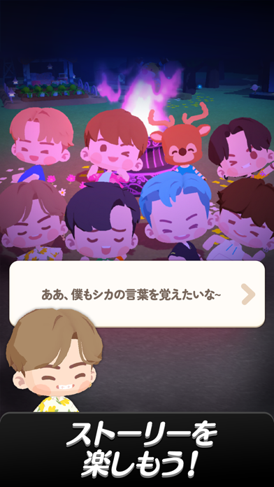 パズルのクリアに合わせて、BTSのメンバーとのストーリーパートが進行します。一緒に釣りをしたり泳いだり、花火をしたりと盛りだくさんのアドベンチャー。ハラハラドキドキを繰り返しながら、素敵な島を作り上げましょう。