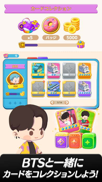 BTSのメンバーと一緒にシンプルなマッチ3パズルで遊べるゲーム。パズルのクリアに応じてストーリーパートが進行します。メンバーと一緒にスポーツをしたり、花火を観たりあなただけの思い出を作りましょう。