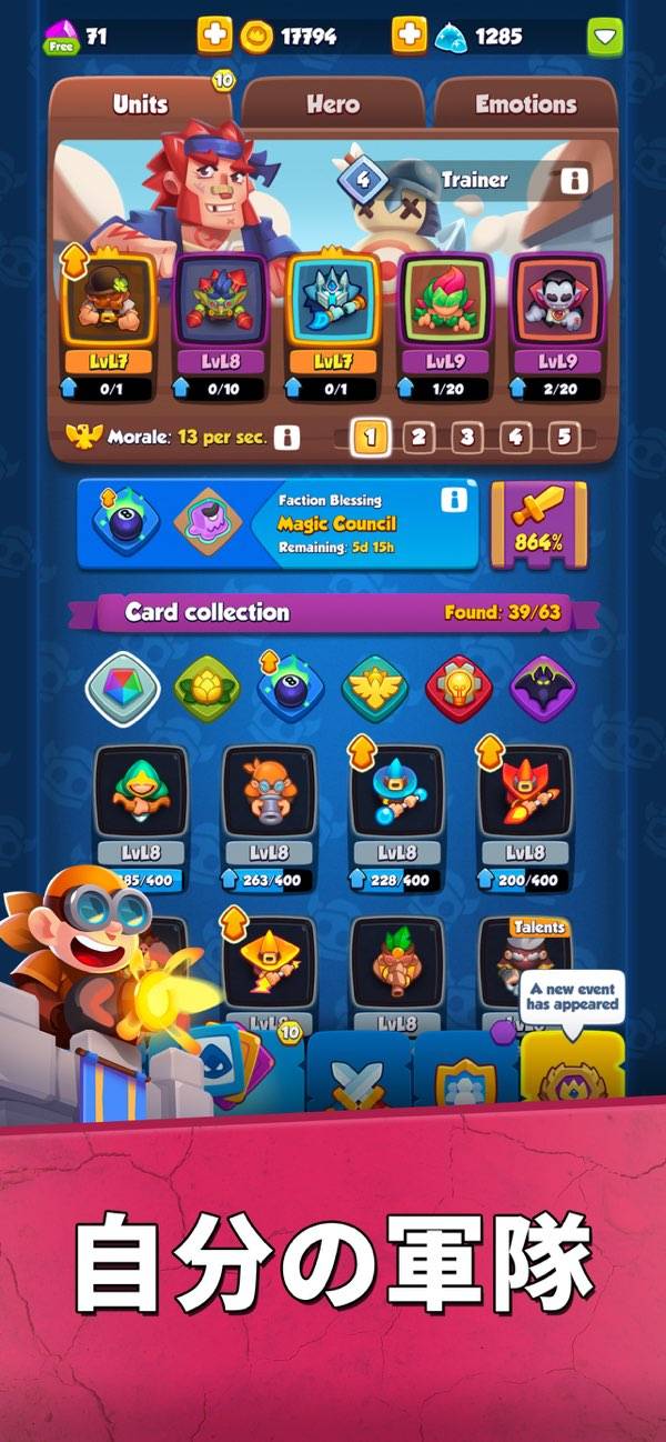 マージ系のゲームながら戦略性の高いバトルができるのが面白い!ひたすら合成していく感じではなく、敵の動きを見ながら、合成と強化を組み合わせる戦い方が特徴です。デッキの編成も、何通りの組み合わせを考えられます。頭を使ったタワーディフェンスをやりこみたい人におすすめです。