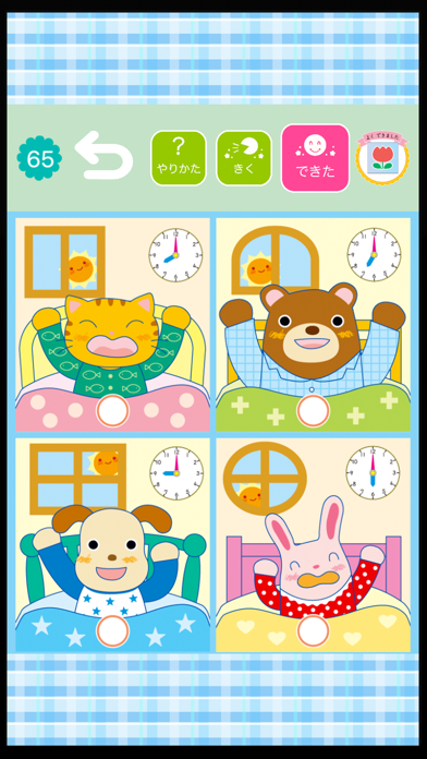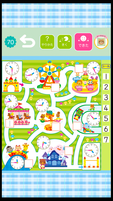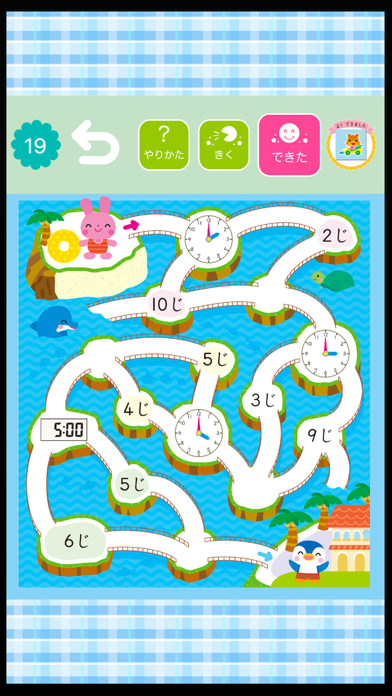 「えさがし」「めいろ」など、楽しい学習モードで時計の読み方がわかるアプリ。すべての問題にナレーションがついているため、小さいお子さん1人でも安心して使えるでしょう。