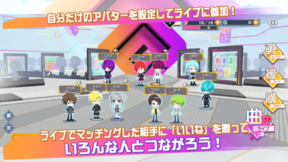 『#コンパス』でおなじみのボカロ曲を多数収録した、オンライン共闘リズムゲームです。仲間と一緒に盛り上がれるところが醍醐味。リアルタイムでマッチングした複数のプレイヤーと一緒に、迫力のライブを体感しましょう。
