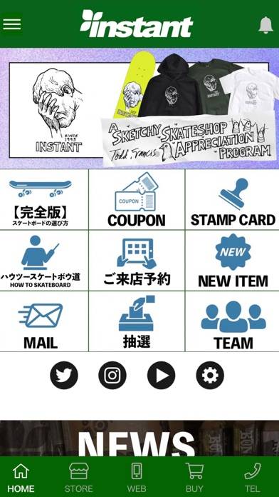 スケートボード専門店「Instant」の公式アプリです。アプリ限定のお得なクーポンや、スタンプカードにアクセス可能。お店でのショッピングや、スケートボードライフがより楽しくなるでしょう。