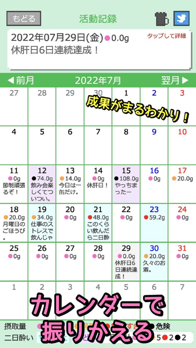 気づいたことや感情を残しておけば、カレンダーで手軽に振り返れます。また、スクリーンショットをSNSに投稿して減酒仲間と交流してみるのもあり。