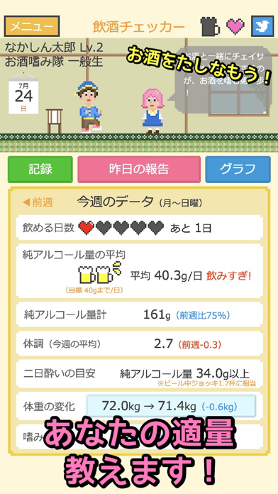 昨日の飲酒を報告するだけ 記録するたびキャラが成長