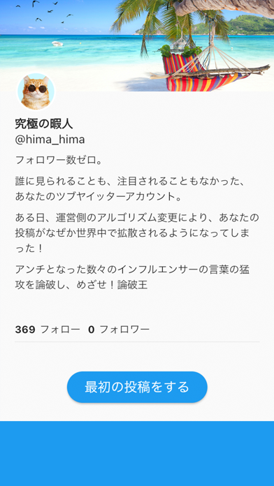 あなたの投稿にコメントしてきた”アンチ”を論破していくゲーム。コメントに対して選択肢が与えられ、どの返信がベストなのか考えていきます。あなたが選んだ返信によって論破できるか、はたまた論破されてしまうかが決まります。アンチコメントを持ち前の思考力で根絶やしにしていきましょう。