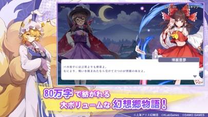 東方Projectの二次創作アプリは数あれど、本作は群を抜く大ボリュームを誇ります。フルボイスで展開されるストーリーに加え、100人にも匹敵する使用可能キャラクターが登場。