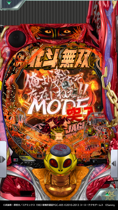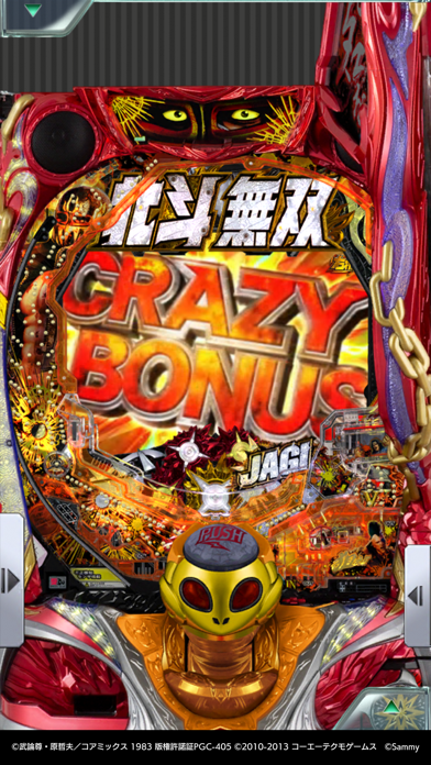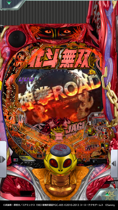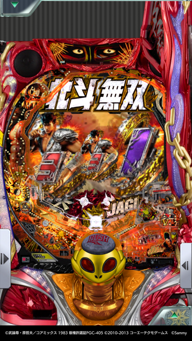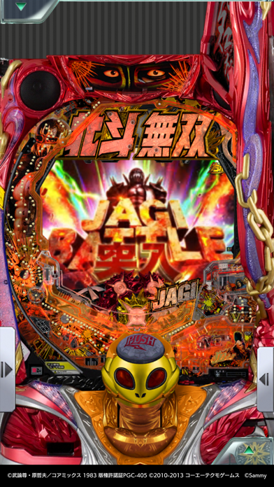 パチンコ「真・北斗無双 第3章 ジャギの逆襲」のアプリ版。これ単体では遊べませんが、パチンコホールアプリ『777Real』と連携すると、ゲーム内のポイントを消費して遊技ができます。
