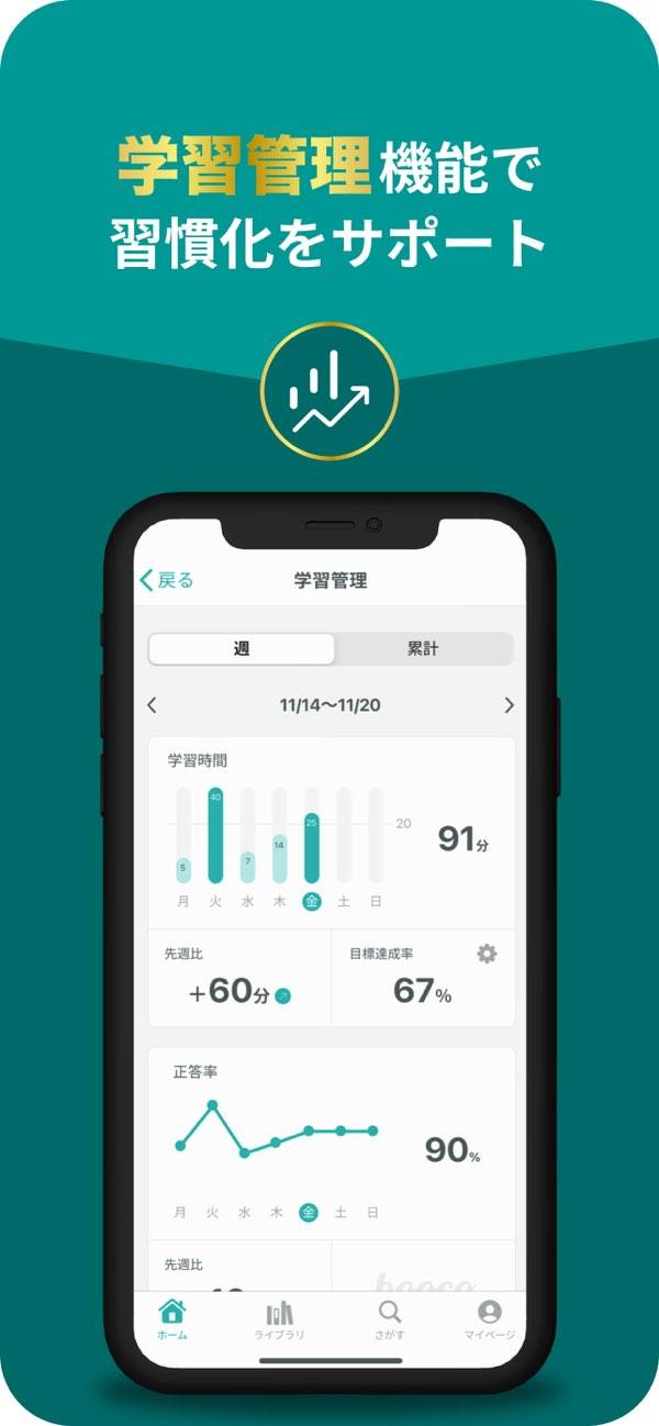 - 学習時間と目標をチェックでき、モチベーションアップに繋がる