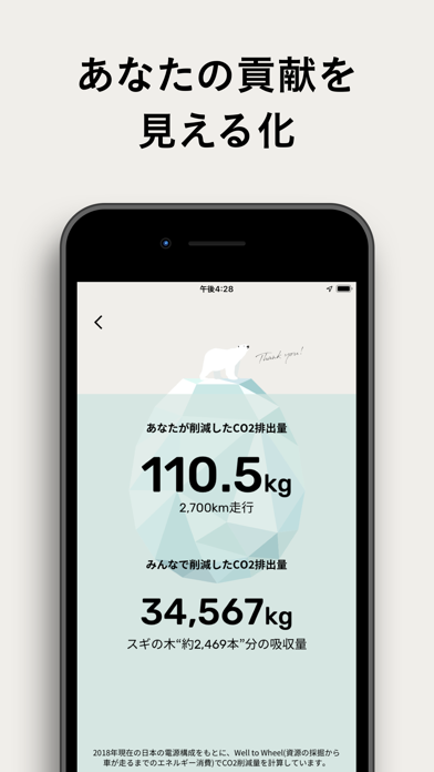 - 走行距離に応じたCO2の削減量を表示。環境への貢献度を見える化