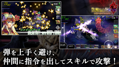 画面上を動き回る光の玉「ウィスプ」がプレイヤーの分身です。ドラック操作でスキルや敵を選択すると攻撃が可能に。敵の攻撃は弾幕となり飛んでくるため、「ウィスプ」に触れないように避けましょう。