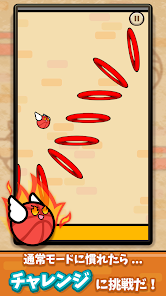 リングをくぐるたびポイントが加算されていきます。天井や床に触れたり、リングをくぐり損ねるとゲームオーバーに。タイミングよくタップしてハイスコアを目指しましょう。
