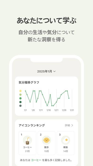 さらに、統計機能により、気分の変動と活動の関連性も把握可能です。自身の生活パターンを把握したい人にもおすすめのアプリです。