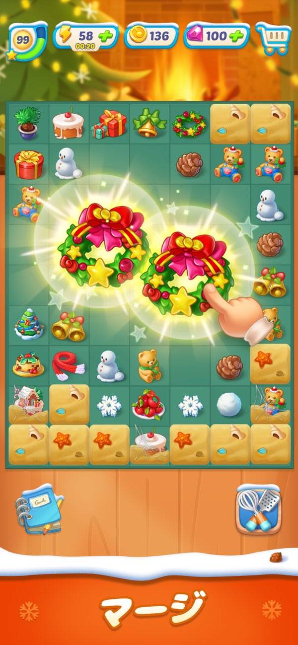 二つの同じアイテムを合体させて進化させていくマージゲーム。