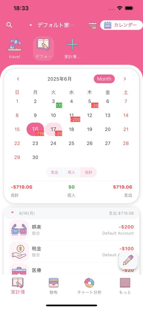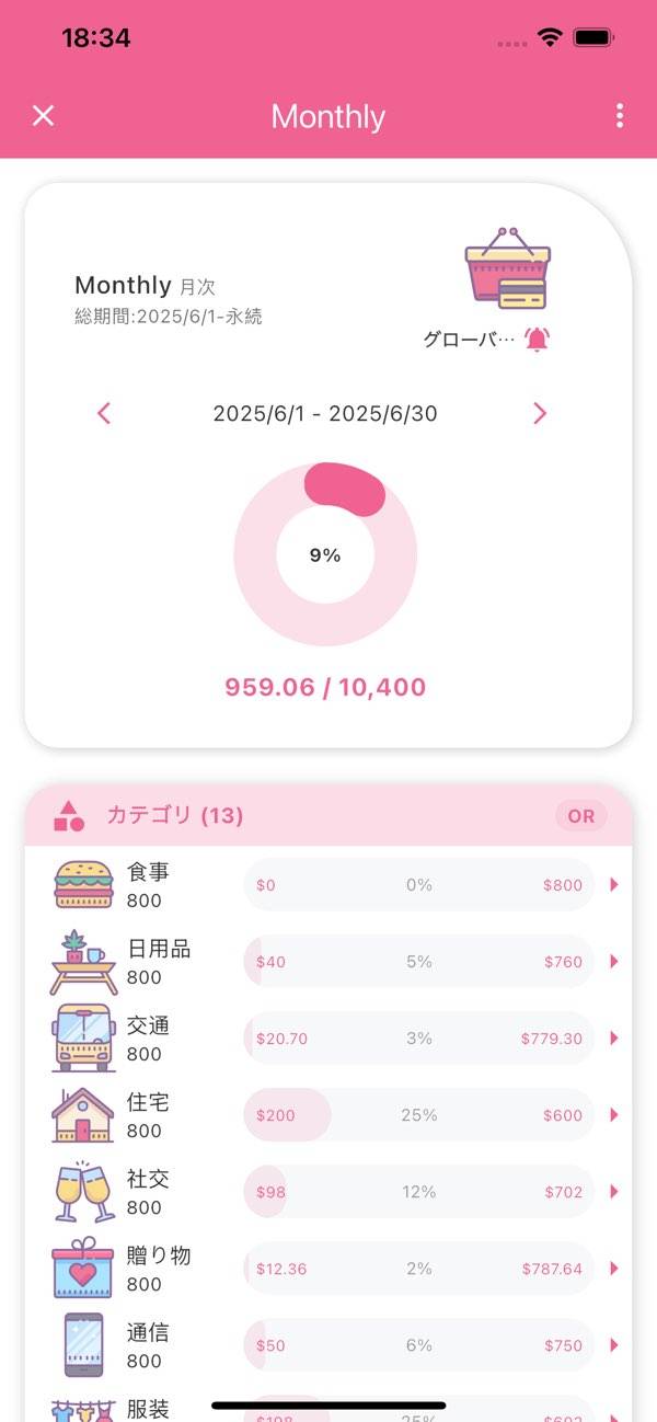 アイコンや配色などが、とにかくかわいい家計管理アプリ。複雑な操作なしで素早く記帳できます。食費やお小遣いなどの予算も分類可能で賢くお金を管理できます。手軽さと安心感を兼ね備えた使いやすさで、家計簿が習慣になるでしょう。
