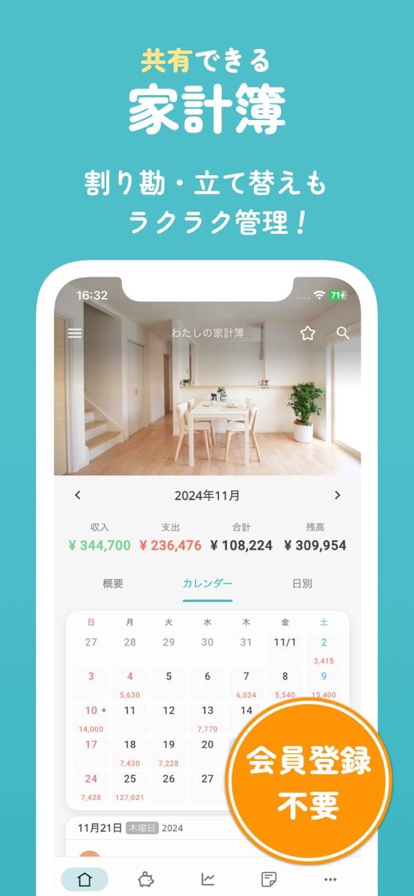 家族やカップルで共有できる! 手軽に記録可能なシンプル家計簿アプリ