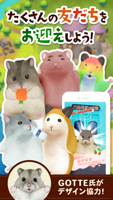 ハムスターの里をどんどん大きくしていく放置ゲームです。ゴールデンハムスターや、サファイアブルーなどさまざまな種類のハムスターが登場。手描き風のデザインが、より可愛さを演出します。