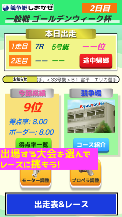 - 2タップでボートレースが楽しめるカジュアル競艇ゲーム