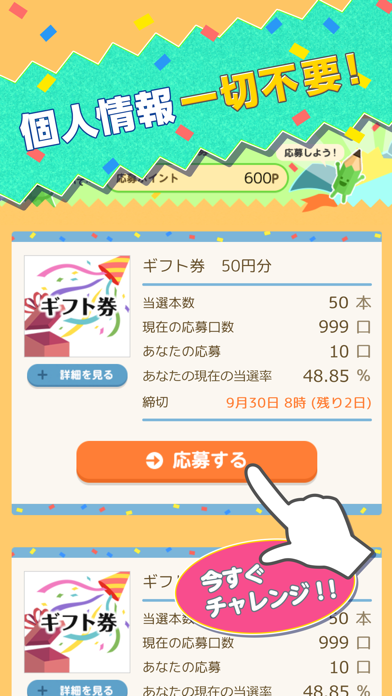 懸賞はポイントを使って応募します。何口でも応募できるため、ポイントを使うペースや当たりやすさは調整しやすいでしょう。