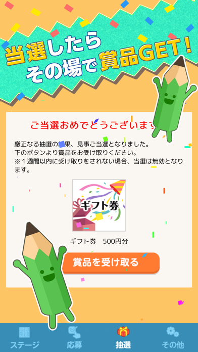 パズルをクリアして獲得したポイントは、懸賞への応募に使えます。当選しても金額は低いですが、AmazonギフトやPayPayギフトなどさまざまなギフトと交換できるので、使える幅は広いでしょう。