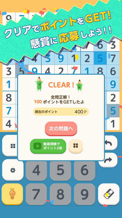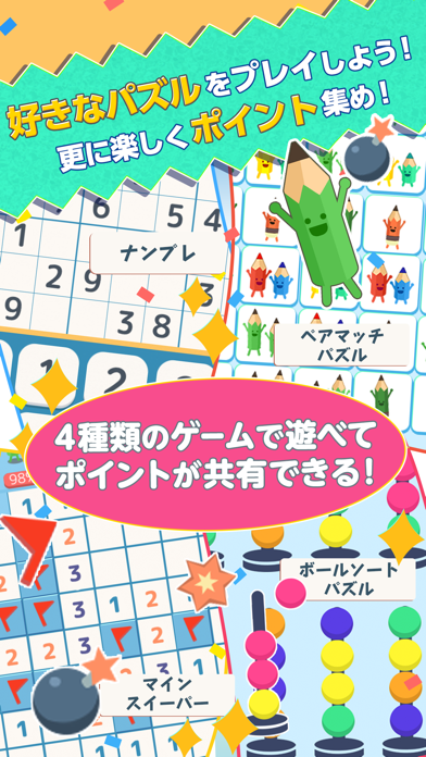 - ナンプレなどのパズルを解いてポイントを貯め、懸賞に応募できるアプリ