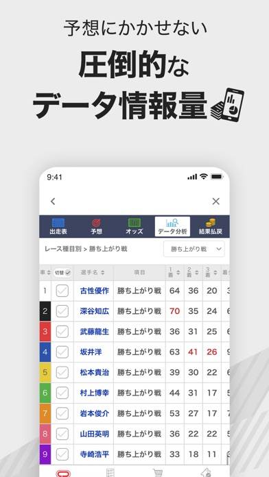 - レースの出走表や、選手の戦績を詳しく掲載している競輪アプリ